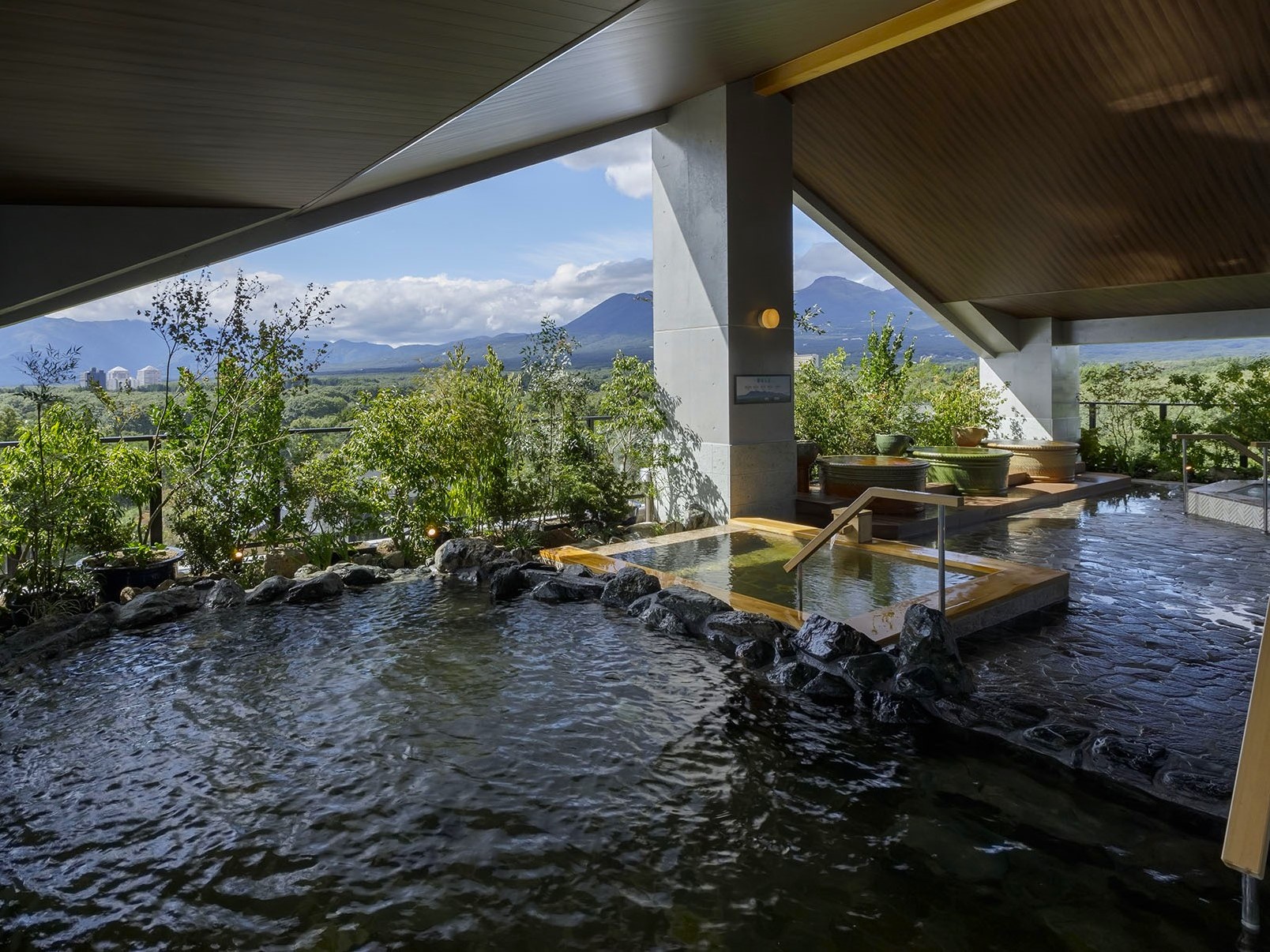 ホテル最上階7階にある展望露天風呂・大浴場は、澄み渡った那須連山を一望する絶景のロケーション。
